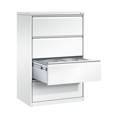 Schubladenschrank Acurado, als Hängeregistraturschrank. Korpus aus stabiler Stahlkonstruktion mit hochwertiger Einbrennbeschichtung für hohe UV-Beständigkeit. Mit integrierter durchgehender Griffleiste. 4 hochwertige Kunststoff-Etikettenrahmen. Achtung: Anlieferungsmöglichkeit durch Sattelschlepper muss gegeben sein.