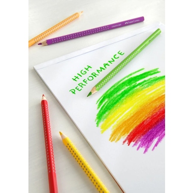 Durch die hohe Pigmentierung der Mine sind die Farben sehr leuchtend. Besonders schöne Ergebnisse entstehen durch die Wasservermalbarkeit der Pigmente: einfach Farbe auftragen, mit feuchtem Pinsel darübermalen und tolle Aquarelleffekte erzielen. Die patentierte Soft-Grip-Zone sorgt für sicheren Griff und ermüdungsfreies und lockeres Malen. Leichtes Spitzen mit jedem Qualitätsspitzer möglich. Bruchfeste Mine durch Spezialverleimung. Mit Namensfeld.