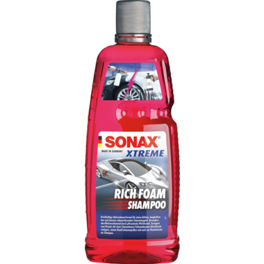 Schaum-Shampoo mit kraftvoller Schmutzlösung und fruchtigem Berry-Duft für das komplette Fahrzeug. Die reichhaltige Aktivschaum-Formel sorgt für einen dichten, langhaftenden und intensiv schmutzlösenden Schaumteppich. Die besonders oberflächenschonende und pH-neutrale Rezeptur ist ideal geeignet für alle gewachsten und versiegelten Oberflächen. Anwendbar in Kombination mit einer Schaumlanze/Schaumkanone (Hochdruckreiniger), einem Hand-Schaumsprüher und auch zur einfachen Handwäsche als reguläres Shampoo. Auch für folierte Fahrzeuge und Mattlacke geeignet. Stark verschmutzte Fahrzeuge vorher vom groben Schmutz befreien. Mit HD-Gerät und Schaumlanze: Je nach Gerät und Lanze 30-100 ml Shampoo mit 1l Wasser vorverdünnen und in den Vorlagebehälter der Schaumlanze füllen.10-30 ml Shampoo mit 1l Wasser im Behälter mischen (je nach Gerät und Düse). Handwäsche: 50 ml Shampoo (=2 Verschlusskappen) in 10 l warmem Wasser auflösen und aufschäumen. Fahrzeug von oben nach unten mit einem Schwamm waschen, Shampoo nicht antrocknen lassen. Anschließend mit klarem Wasser gründlich abspülen und abledern. Bitte beachten: Nicht auf heißen Oberflächen anwenden. Vor Frost schützen.