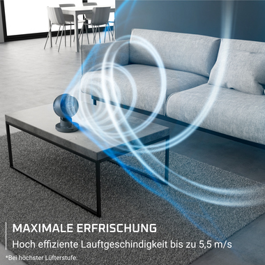 Tischventilator, der mit einer Luftgeschwindigkeit von 5,5 m/s für eine intensive Abkühlung sorgt, die Sie vom anderen Ende des Raumes aus spüren können. Multidirektionale Oszillation in alle Richtungen, für eine Luftzirkulation im ganzen Raum. Genießen Sie die gleiche großartige Leistung bei 70 % weniger Energieverbrauch. Kombinieren Sie diesen Tischventilator mit Ihrer Heizung, Klimaanlage oder einem Luftbefeuchter, um das ganze Jahr über mehr Komfort zu genießen und gleichzeitig Energie zu sparen. Modernes Design mit einer ultrakompakten Höhe, die sich perfekt für die Verwendung auf einem Schreibtisch oder einer Arbeitsfläche eignet. Individuell anpassbare Abkühlung mit 3 automatischen Modi - darunter natürliche Brise, Silent- und Nachtmodus. Digitales Display und Timer mit einer Laufzeit von bis zu 12 Stunden für erfrischende Kühlung jederzeit - plus Fernbedienung mit integriertem magnetischem Aufbewahrungsfach.