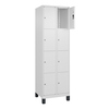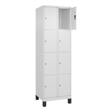 Schließfachschrank Classic PLUS. Korpus aus stabiler Stahlkonstruktion mit hochwertiger Einbrennbeschichtung für hohe UV- und Korrosionsbeständigkeit. Türaufhängung rechts, Stahltüren mit Soft-Anschlag und geschlossenen Seitenprofilen für hohe Stabilität. Türaufhängung in stabilen Drehbolzen. Schließkreis bis 1000 verschiedene Schließungen. 100 mm hohe Füße aus Kunststoff für erweiterten Korrosionsschutz. Achtung: Anlieferungsmöglichkeit durch Sattelschlepper muss gegeben sein.