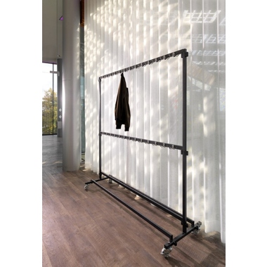 Diese Garderobe mit Haken ist ideal, um eine große Anzahl von Mänteln strukturiert, effizient und ordentlich aufzuhängen. Dank der Rollen lässt sich die Garderobe leicht bewegen, und mit den Bremsen an den Rollen kann sie sicher fixiert werden. Über die Verbindungspunkte lässt sich die Garderobe mit weiteren Garderoben verbinden. So können Garderobenräume schnell und effizient eingerichtet werden.