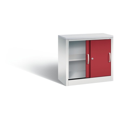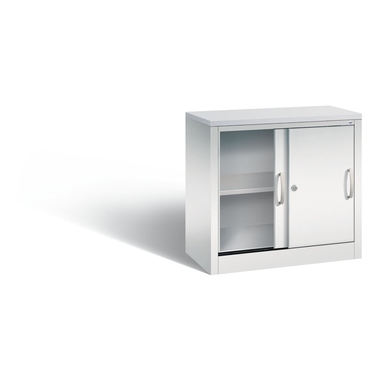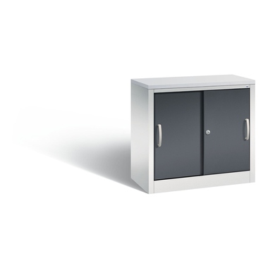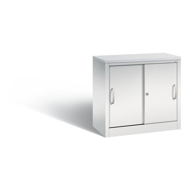 Stahl-Schiebetürenschrank Acurado-2000 als Sideboard. Korpus aus stabiler Stahlkonstruktion mit hochwertiger Einbrennbeschichtung für hohe UV-Beständigkeit. Integrierte Niveauregulierung. Hohe Flexibilität der Inneneinrichtung durch Höhenverstellbarkeit im Raster. Türen verstärkt für hohe Stabilität. Leichtgängige Bedienung durch Leichtlaufrollen in spezieller Schienenführung. 1 Abdeckplatte (25 mm). 2 ergonomische Bügelgriffe Ergolock für einfache Bedienung. Achtung: Anlieferungsmöglichkeit durch Sattelschlepper muss gegeben sein.