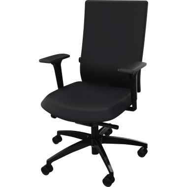 Bürodrehstuhl mit Armlehnen. Hohe, flexible Rückenlehne mit Kunststoff-Außenschale, höhenverstellbar. Synchrontechnik mit seitlicher stufenloser Federkraftverstellung und 4-fach arretierbarer Synchronbewegung. Sitz und Rückenlehne gepolstert. Sitz und Rückenlehnenbezug ohne seitliche Polsternaht. Atmungsaktiver Formschaum (PU), FCKW- und CKW-frei geschäumt. Lastabhängig gebremste Doppellaufrollen. Alle Kunststoffteile sind sortenrein, PVC-frei und recyclingfähig. Alle Materialien sind umweltschonend, leicht trennbar und recycelbar.