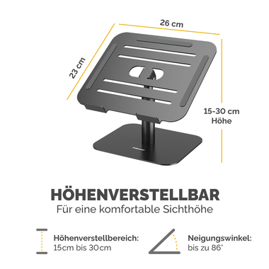 Heben Sie Ihren Laptop auf eine angenehme Sichthöhe an, um Augen-, Nacken- und Schulterschmerzen zu reduzieren. 15 cm einfache Höhenverstellung für eine ergonomisch korrekte Haltung. Neigungsverstellbare Plattform zur optimalen Bildschirmpositionierung - ideal für Laptops/MacBooks mit begrenztem Öffnungswinkel. Kompaktes Design - perfekt für kleine Arbeitsbereiche. Offenes Design sorgt für bessere Luftzirkulation, damit Ihr Laptop kühl bleibt; rutschfeste Pads halten ihn sicher an Ort und Stelle. Hergestellt aus 96 % Post-Consumer recyceltem Material.