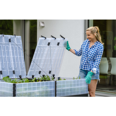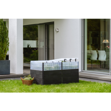 Ergo Hochbeete kombinieren ergonomische Gartenarbeit mit Flexibilität und einem hervorragenden Preis-Leistungs-Verhältnis. Die Ergo TurboPlus 2L Hochbeete verfügen über einen Frühbeetaufsatz. Diese schützt die Pflanzen vor Witterungseinflüssen und sorgt auch bei niedrig stehender Sonne für eine gute Sonneneinstrahlung und damit bestes Pflanzenwachstum. Durch die flexible Abdeckung lässt bleibt die Temperatur stets im optimalen Bereich. Die nährstoffreiche Befüllung des Hochbeets, wie beispielsweise mit Kompost und Gartenerde, sorgt für einen idealen Nährboden. Neben Pflanzen aller Art gedeihen vor allem Obst und Gemüse sowie Küchenkräuter hervorragend, um sich selbst mit seinem Garten zu versorgen. Ergonomisches Arbeiten in bequemer Höhe. Hohe Lichtdurchlässigkeit für optimale Sonnen- und Wärmenutzung. Dekorative 3D-Oberfläche.