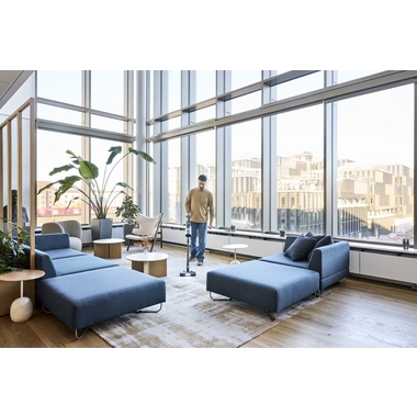 Der VU200 ist einfach zu bedienen, leicht zu entleeren und schnell zu laden. Hellblaue Elemente zeigen intuitiv, wo man ihn bedient. Mithilfe der farbigen Schalter am Griff und des digitalen Displays lassen sich die Saugstufen je nach Bodenart anpassen. Der Wechsel des HEPA-Filters ist werkzeuglos, ebenso wie das Entleeren des Staubbehälters ohne Beutel.