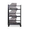 Dieser Wagen wurde speziell für den Transport und die Lagerung von Schalensitzen ohne Armlehnen aus der Keeve-Serie entwickelt. Der Transportwagen ist vollständig mit Filz geschützt und verfügt über Verriegelungsstangen zum sicheren Verschließen. Durch das kompakte Design eignet sich der Wagen ideal für den effizienten Transport mehrerer Stühle auf einmal.